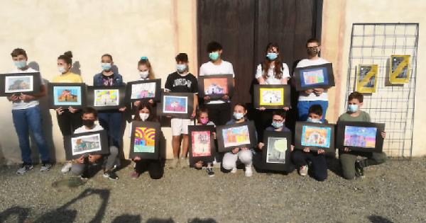i ragazzi con i disegni alla premiazione