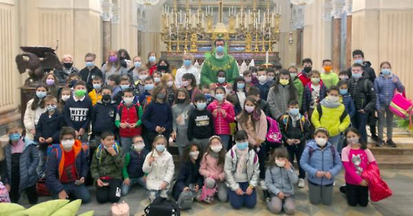 NOLE. Una bella cerimonia quella che si è svolta domenica 17 ottobre nella chiesa parrocchiale per l’apertura dell’anno catechistico 2021/2022. Durante la messa delle 10,30 il parroco don Antonio Marino ha impartito la benedizione agli alunni delle scuole nolesi, agli insegnanti e anche agli zainetti che accompagneranno i ragazzini durante l’intero anno scolastico.