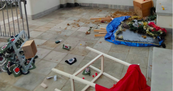 L'atrio della Cappella di San Michele devastato dai vandali