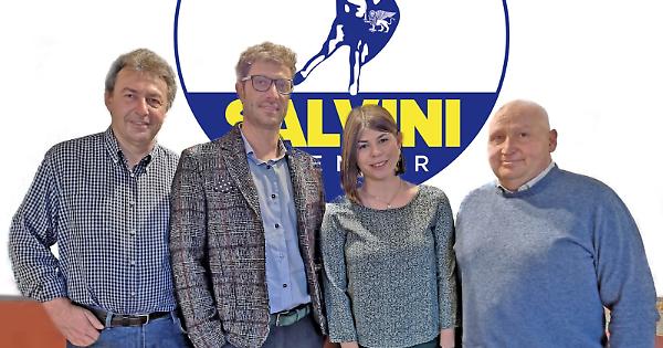 Il senatore Cesare Pianasso, il candidato sindaco Roberto Bonome, Francesca Pessetti di Muovi Rivarolo e il segretario della Lega Paolo Frijia