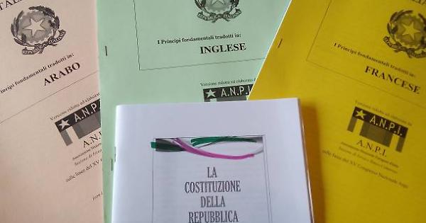Il 31 maggio 2022, in preparazione della Festa della Repubblica, l’Anpi di Ivrea e Basso Canavese ha distribuito agli alunni del CPIA e alla Consulta Stranieri copie della Costituzione italiana tradotte in varie lingue: inglese, francese, arabo e russo. In ciò facendo seguito a quanto annunciato qualche giorno prima. Resta da rimarcare l’interesse suscitato negli alunni (adulti provenienti da vari Paesi: Brasile, Nigeria, Ciad, Marocco, Est europeo) nello scoprire attraverso la Carta costituzionale i diritti (e i doveri) che essa accorda a tutti i Cittadini. Essi, in procinto di diventarlo, hanno preso coscienza di quanto può essere loro riconosciuto dalle leggi fondamentali dello Stato. I loro occhi (dietro le mascherine) brillavano di sincero interessamento, di partecipazione e coinvolgimento. Gabriella Colosso e il presidente dell'Anpi Mario Beiletti hanno illustrato in particolare alcuni articoli, come il 3: “Tutti i cittadini hanno pari dignità sociale e sono eguali davanti alla legge, senza distinzione di sesso, di razza, di lingua, di religione, di opinioni politiche, di condizioni personali e sociali. E` compito della Repubblica rimuovere gli ostacoli di ordine economico e sociale, che, limitando di fatto la libertà e l'eguaglianza dei cittadini, impediscono il pieno sviluppo della persona umana e l'effettiva partecipazione di tutti i lavoratori all'organizzazione politica, economica e sociale del Paese.” Oppure l’articolo 11: “ L'Italia ripudia la guerra come strumento di offesa alla libertà degli altri popoli e come mezzo di risoluzione delle controversie internazionali; consente, in condizioni di parità con gli altri Stati, alle limitazioni di sovranità necessarie ad un ordinamento che assicuri la pace e la giustizia fra le Nazioni…”E’ stato però ricordato, come ammoniva Piero Calamandrei: “Però, vedete, la Costituzione non è una macchina che una volta messa in moto va avanti da sé. La Costituzione è un pezzo di carta: lo lascio cadere e non si muove. Perché si muova bisogna ogni giorno, in questa macchina, rimetterci dentro l’impegno, lo spirito, la volontà di mantenere quelle promesse, la propria responsabilità…”Un momento importante che ripeteremo il prossimo anno, con un progetto che coinvolgerà gli studenti del CPIA (e non solo) per una maggior conoscenza della Costituzione.
