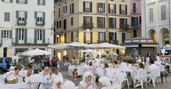 Una piazza Ottinetti così bianca la si vede solo una volta l’anno. La sera in cui si svolge la “Cena in bianco”, appunto, organizzata dall’associazione degli Amis ad Piassa la Granaja, guidata da Pierluigi