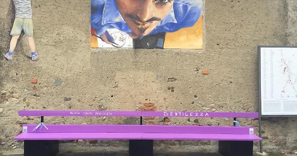 Anche Maglione, il tradizionale paese delle pesche, ha la sua panchina viola (il colore che simboleggia la gentilezza).