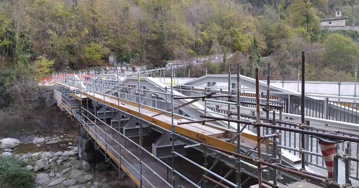 Attualmente sono in corso le operazioni di smontaggio del ponteggio provvisionale. Le opere verranno completate con l’esecuzione dell’impermeabilizzazione della soletta e la stesa della pavimentazione stradale in conglomerato bituminoso.