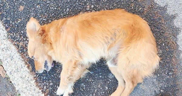 Il cane che è stato investito ieri a Castellamonte, postata sui social