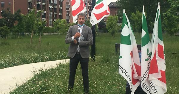 Nel pomeriggio il candidato del Partito Democratico ha presento la sua candidatura alle primarie del centrosinistra al parco della Pragranda.