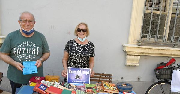 Il banchetto dei volontari della Banca del Tempo (foto Pistamiglio)