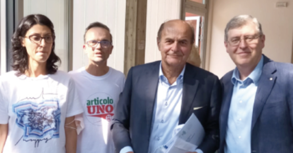 Sandra Sferruzza, Marco Cetini e Ambrogio Sartirano con il parlamentare Pierluigi Bersani