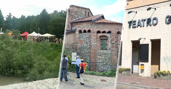 In foto, da sinistra verso destra: una delle edizioni dello street food a San Mauro, la Pulcherada, il cinema teatro Gobetti