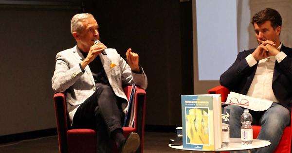 Paolo Silvetti durante una presentazione del suo libro. In alto a destra, la copertina della ricerca pubblicata da Daniela Piazza Editore