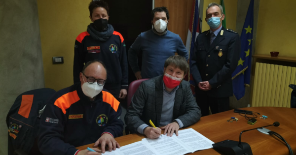 in foto, Manuela Parise, vice caposquadra Aib, Roberto Scarafiotti, caposquadra, Valeriano Carrera, Comandante polizia locale, Giuseppe Molinari, Assessore all Protezione Civile, Paolo cugini, Sindaco.