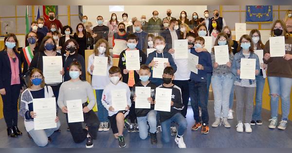 Il Consiglio comunale si è fermato per premiare i giovani poeti della 1° D della scuola media “Nicoli”, vincitori del premio speciale della Giuria, ex aequo con una scuola delle Filippine, alla XVIII Edizione 2021-2022
