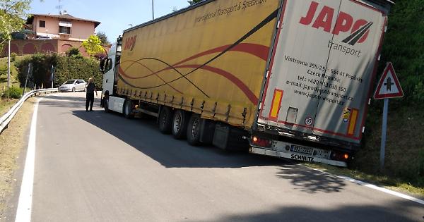 Il camion rimasto incastrato