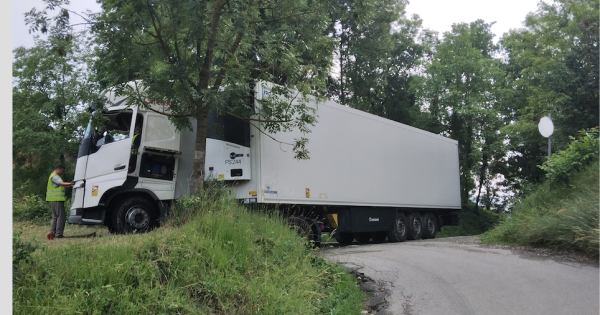 in foto, il camion mentre cerca di fare inversione venerdì sera