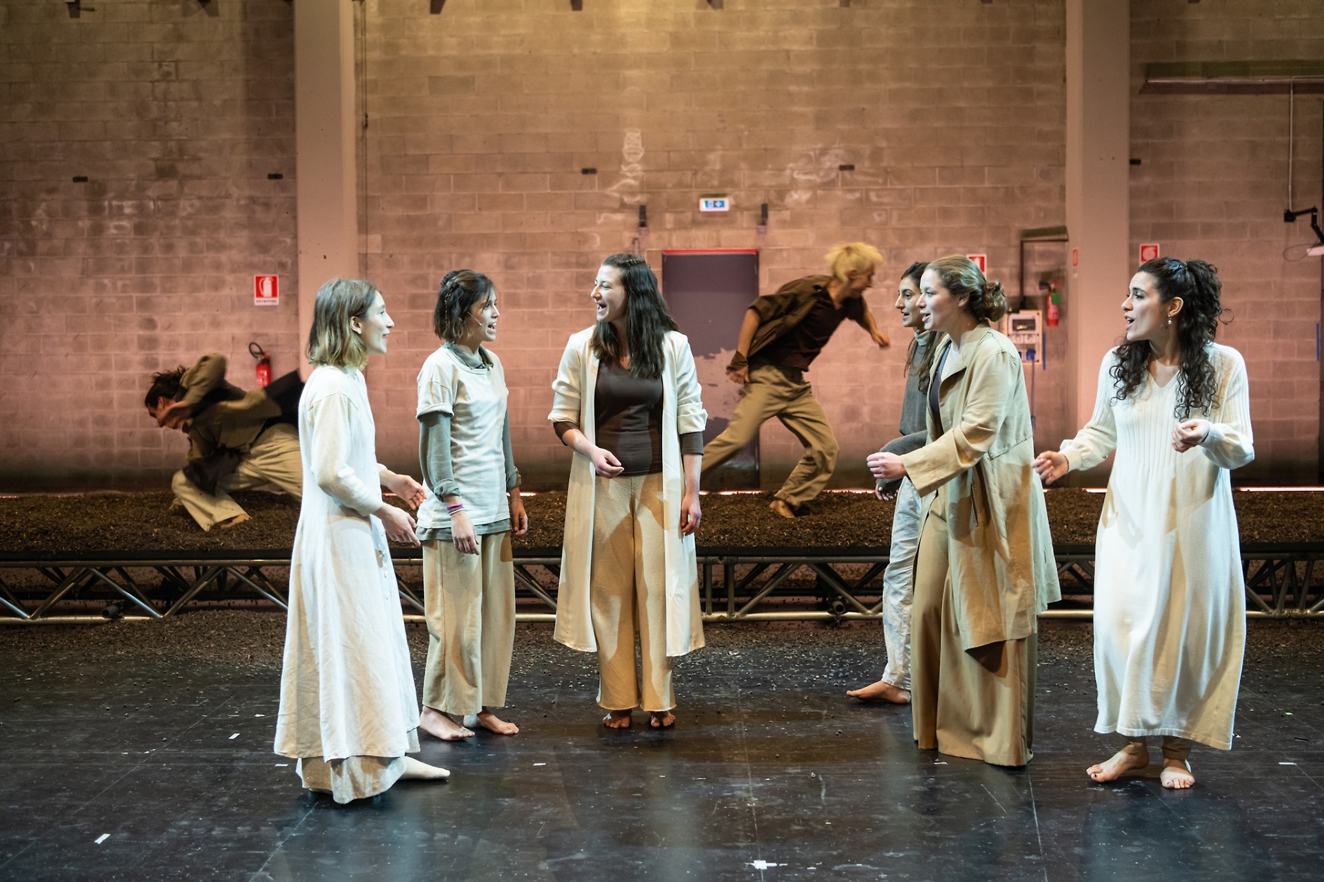 La compagnia PEM di Settimo Torinese durante lo spettacolo "Antigone e i suoi fratelli"