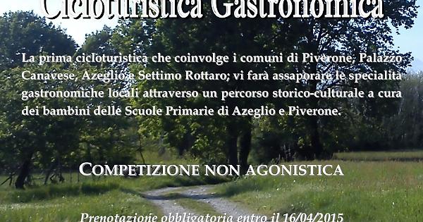 Una cicloturistica-gastronomica che toccherà i comuni di Azeglio, Palazzo, Piverone e Settimo Rottaro. Si tratta di una manifestazione nata dalla volontà di un gruppo di ragazzi dei paesi allo scopo di far conoscere e valorizzare il territorio. La loro idea ha trovato immediatamente terreno fertile nelle quattro amministrazioni e nelle Pro Loco. Alla manifestazione parteciperanno i bambini delle Scuole Primarie di Piverone ed Azeglio, che per l'occasione racconteranno aneddoti e curiosità in ogni paese. Sarà possibile anche gustare i prodotti tipici in un itinerario immerso nella natura. L’appuntamento è per domenica 19 aprile. La partenza è prevista a Piverone per le ore 9, dove sarà necessario provvedere alla registrazione, ritirare il 'pass mangereccio' e iniziare con una leggera colazione. Dopo aver visitato i punti di interesse si proseguirà verso Palazzo Canavese dove verrà offerto un aperitivo. Ad Azeglio è programmato il pranzo (per le ore 12,30 circa). Poi il percorso proseguirà in direzione del Birdwacthing e dell’approdo Palafitticolo. Si proseguirà successivamente in direzione Settimo Rottaro dove, dopo una breve tappa in paese, i partecipanti potranno gustare presso il Campo Celtico la merenda. E' prevista una navetta gratuita a servizio dei partecipanti. I costi sono di 15 euro per gli adulti; 10 euro per i bambini fino a 10 anni. Le prenotazioni dovranno pervenire entro giovedì 16 aprile al 366/4214151. Gli organizzatori raccomandano l’obbligo del caschetto.