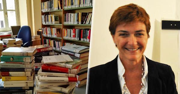 Gli attuali locali della biblioteca e la bibliotecaria Patrizia Massazza