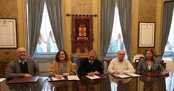 Firmatari del Protocollo di intesa Emanuela Zambataro, Direttore regionale Inps Piemonte, Andrea Corsaro, Sindaco della Città di Vercelli, Gianni Brunoro, rappresentante della Caritas Eusebiana di Vercelli.