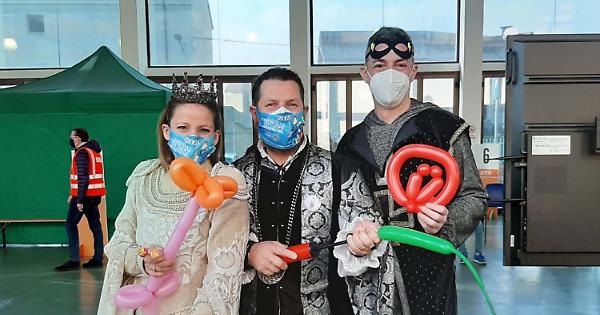 TRINO VERCELLESE. Inizia il 71° Carnevale, seppure in forma ridotta. Sabato 12 febbraio le maschere dell’associazione Nuovo Carnevale Storico Trinese erano presenti al centro vaccinale allestito al mercato coperto, dove i bambini venivano sottoposti alla vaccinazione anti Covid; e così sarà anche sabato 19 e sabato 26.