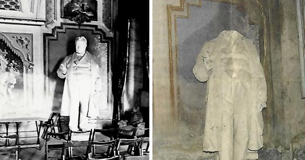 A sinistra la statua - quand’era ancora intera - in un salone della tenuta di Leri, a destra la statua nel 2010
