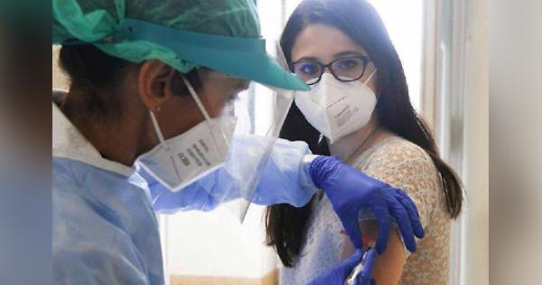 Lo scatto fotografico che coglie il momento in cui Claudia Viteritti ha ricevuto la prima dose del vaccino contro il SARS-coV-2 alle Molinette
