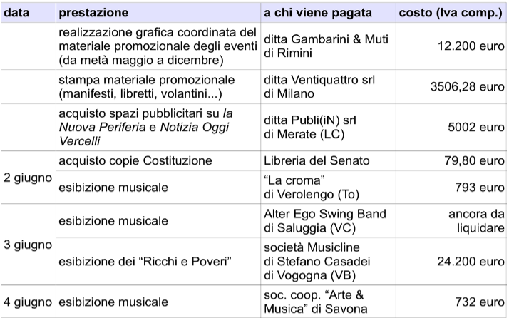 Qui di seguito pubblichiamo un primo elenco di alcune delle spese finora approvate.