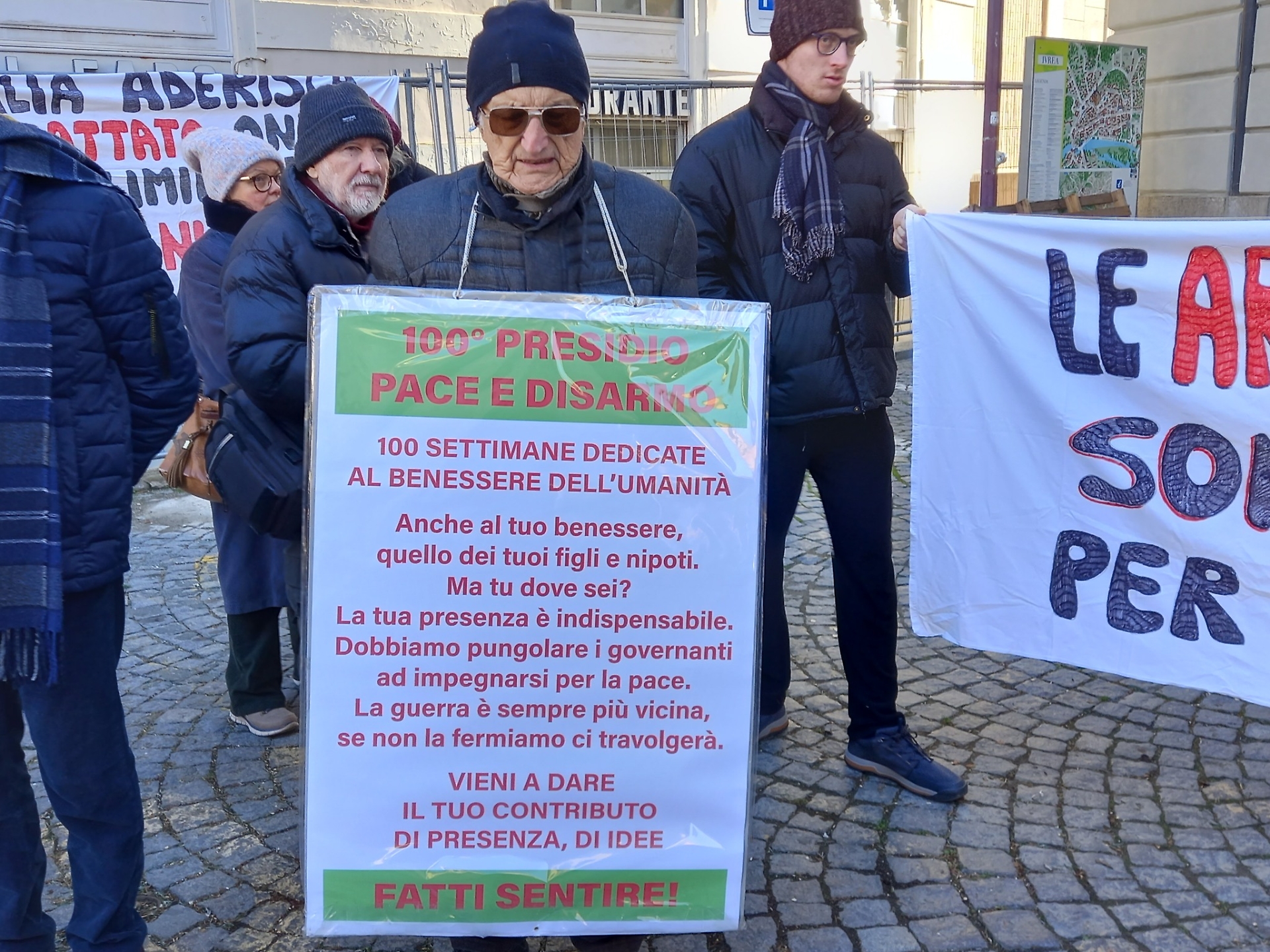 “Dobbiamo evitare - ha messo le mani avanti - che questo Presidio diventi una commemorazione vuota, dall’Ucraina in poi. Speriamo che il prossimo sabato ci sia la stessa partecipazione di oggi [più di 90 N.d.R.], e non solo per oggi perché è il 100° Presidio. La società civile c’è, manca la politica. Se i nostri rappresentanti votano per l’invio di nuove armi o al massimo si astengono. Finora per l’Ucraina il voto è stato trasversale. Guardiamo bene i programmi dei partiti alle prossime elezioni europee. Controlliamo!”.