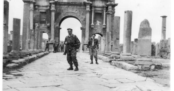 Avamposto della 3a Legione Augusta a Timgad, anno 1960. Benito Recrosio è in primo piano; sullo sfondo i resti della città romana
