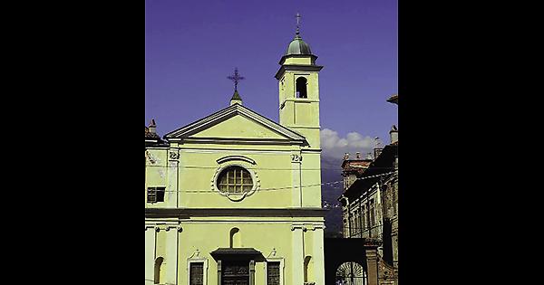 La chiesa dedicata a San Nicola da Tolentino apparteneva all’omonima confraternita, la quale fece edificare ed abbellire il proprio oratorio nel corso del Seicento. In precedenza i confratelli si riunivano nella cappella della Santissima Trinità, ubicata nei pressi della cattedrale. L’antica cappella aveva dato il titolo al sodalizio; quest’ultimo era nato nel Trecento con intenti penitenziali e di culto verso il mistero della Trinità, la Beata Vergine e l’apostolo Giacomo. In età moderna la vita dell’associazione si arricchì di nuove devozioni, richiamate nelle stesse opere che decorano la chiesa. Infatti la confraternita assunse come compatrono San Nicola da Tolentino, canonizzato nel 1446 e primo appartenente all’Ordine degli Agostiniani, scegliendo di adottare l’abito nero. Il titolo di confraternita della Misericordia e la devozione verso San Giovanni Battista Decollato si affiancarono in seguito come documenta il privilegio, accordato nel 1645 da Madama Reale Cristina di Francia, di liberare ogni anno un condannato a morte. Da quel momento il principale compito della Confraternita divenne l’assistenza ai carcerati, confinati nel vicino castello, e la sepoltura dei giustiziati a morte, i cui corpi erano deposti nel cimitero o nei sacelli all’interno della chiesa, come ricordano due lapidi con iscrizione nel pavimento. Al Sei e Settecento risalgono la maggior parte delle testimonianze architettoniche e artistiche della chiesa di San Nicola, commissionate dalla confraternita che annoverava tra gli iscritti anche famiglie dell’aristocrazia e della borghesia locale (De Solario, Scaglia). La vetustà della cappella dedicata al mistero trinitario e il bisogno di spazi più ampi determinarono l’esigenza del nuovo oratorio, iniziato a costruire nel 1605; l’edificazione della chiesa fu completata con la realizzazione del coro nel 1627. Le pareti interne, dipinte dal pittore Cesare Chiala tra il 1683 e il 1694, presentano una decorazione illusionistica di gusto barocco, in cui si alternano, incorniciate da finte architetture, marmi e stucchi, le scene tratte dalla vita di San Nicola. All’interno Tra le opere di pregevole fattura vi sono quelle in legno intagliato, ovvero la porta di ingresso, una ‘macchina’ d’altare e gli stalli del coro. Questi ultimi sono costituiti da 33 riquadri, realizzati dallo scultore Francesco Mabrito nel 1684, i quali ritraggono episodi di vita e i miracoli di San Nicola da Tolentino, secondo un’iconografia forse desunta dalle immagini che corredavano una celebre opera agiografica sul medesimo santo, edita nel 1578 e dovuta ad Ambrogio Frigerio. Il coro ospita inoltre un’importante struttura lignea, facente parte in origine dell’altare maggiore; al centro, al posto del tabernacolo, vi è la statua di un angelo, che sorregge in un vassoio la testa del Battista; nella parte inferiore vi sono anche le statue che riproducono, a destra, Guglielmo Duca d’Aquitania e, a sinistra, il vescovo San Simpliciano; al centro dell’ancona vi è un olio su tavola, opera recentemente attribuita a Giuseppe Giovenone il Giovane (1524-1608) che raffigura la Vergine col Bambino tra un vescovo e i Santi Nicola e Giovanni Battista infante; nella parte superiore vi sono i gruppi scultorei della Beata Maria Vergine e della Trinità circondati da cornici e raggi dorati. Interessante è inoltre la tela, datata 1619 e con l’insegna degli Scaglia, la quale riproduce, in primo piano, il Beato Amedeo IX di Savoia mentre distribuisce offerte ai poveri e, sullo sfondo, un panorama della città di Ivrea. La Chiesa si trova nella zona della Cattedrale e qui il giovedì precedente la Festa di San Savino vengono presentati i Priori della festa.