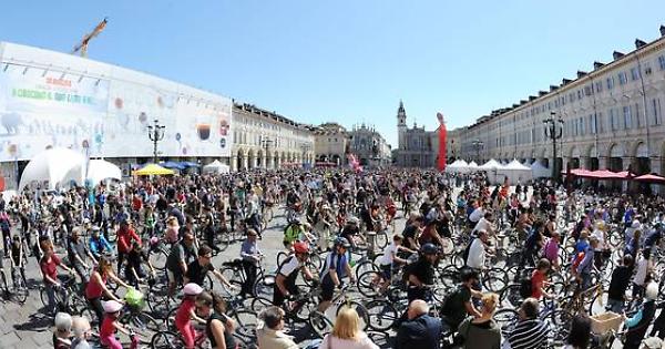 Parata di bici per il centro di Torino. Il lungo serpentone di ciclisti ha attraversato la città per chiedere alle amministrazioni politiche a sostegno della mobilità e della sicurezza stradale per i ciclisti. E' la 'Bike Pride', giunta quest'anno alla sesta edizione. Dodici chilometri in sella aspettando la ciclovia del Po, il collegamento in bici tra Torino e Milano e da lì poi fino a Venezia. Regione Piemonte e Comune di Torino hanno annunciato che ci sono i fondi per iniziare i lavori.