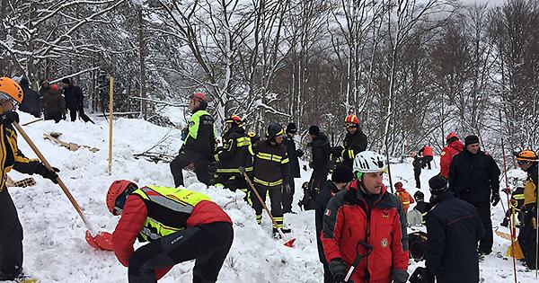 Continua anche oggi il lavoro del Soccorso Alpino e Speleologico Piemontese di sondaggio, scavo ed estrazione delle persone intrappolate sotto la valanga che ha travolto l'hotel Rigopiano. Sono 23 gli operatori piemontesi presenti nelle zone del disastro, 15 impegnati sullo scenario dell'Hotel Rigopiano e altri otto dislocati nelle aree limitrofe per portare con sci e pelli di foca viveri, beni di prima necessità e medicinali nelle frazioni di montagna ancora isolate a causa delle abbondanti nevicate.