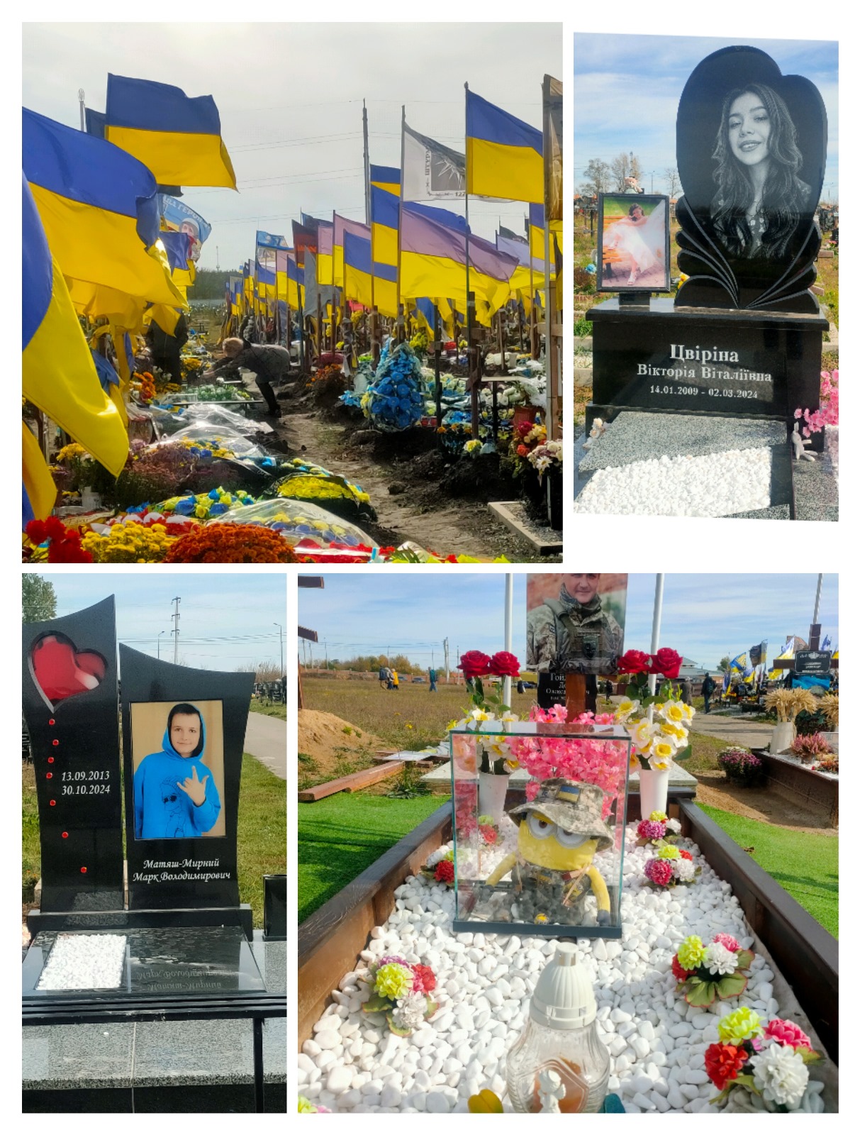 Bandiere ucraine, volti scolpiti nella pietra e ricordi d’infanzia: il silenzio dei caduti parla più di mille parole.