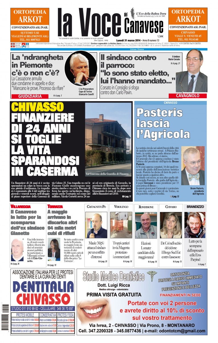 Testi e foto qui pubblicati sono proprietà de LA VOCE DEL CANAVESE tutti i diritti sono riservati. L’utilizzo dei testi e delle foto on line è, senza autorizzazione scritta, vietato (legge 633/1941).