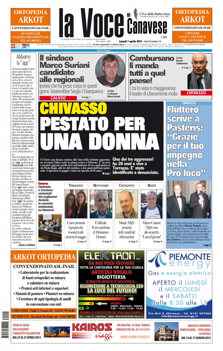 Reg. Tribunale di Torino n. 57 del 22/05/2007. Direttore responsabile: Liborio La Mattina. Proprietà LA VOCE SOCIETA’ COOPERATIVA. P.IVA 09594480015. Redazione: via Torino, 47 – 10034 – Chivasso (To). Tel. 0115367550 Cell. 3474431187