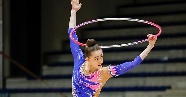 La ginnasta sanmaurese Laura Golfarelli impegnata nell'esercizio con il cerchio