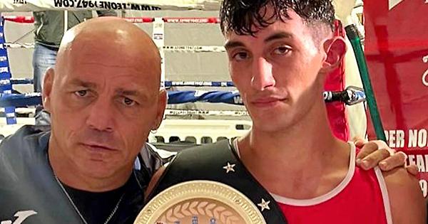 Il pugile Damiano Vallelonga insieme al suo maestro Alessio Furlan