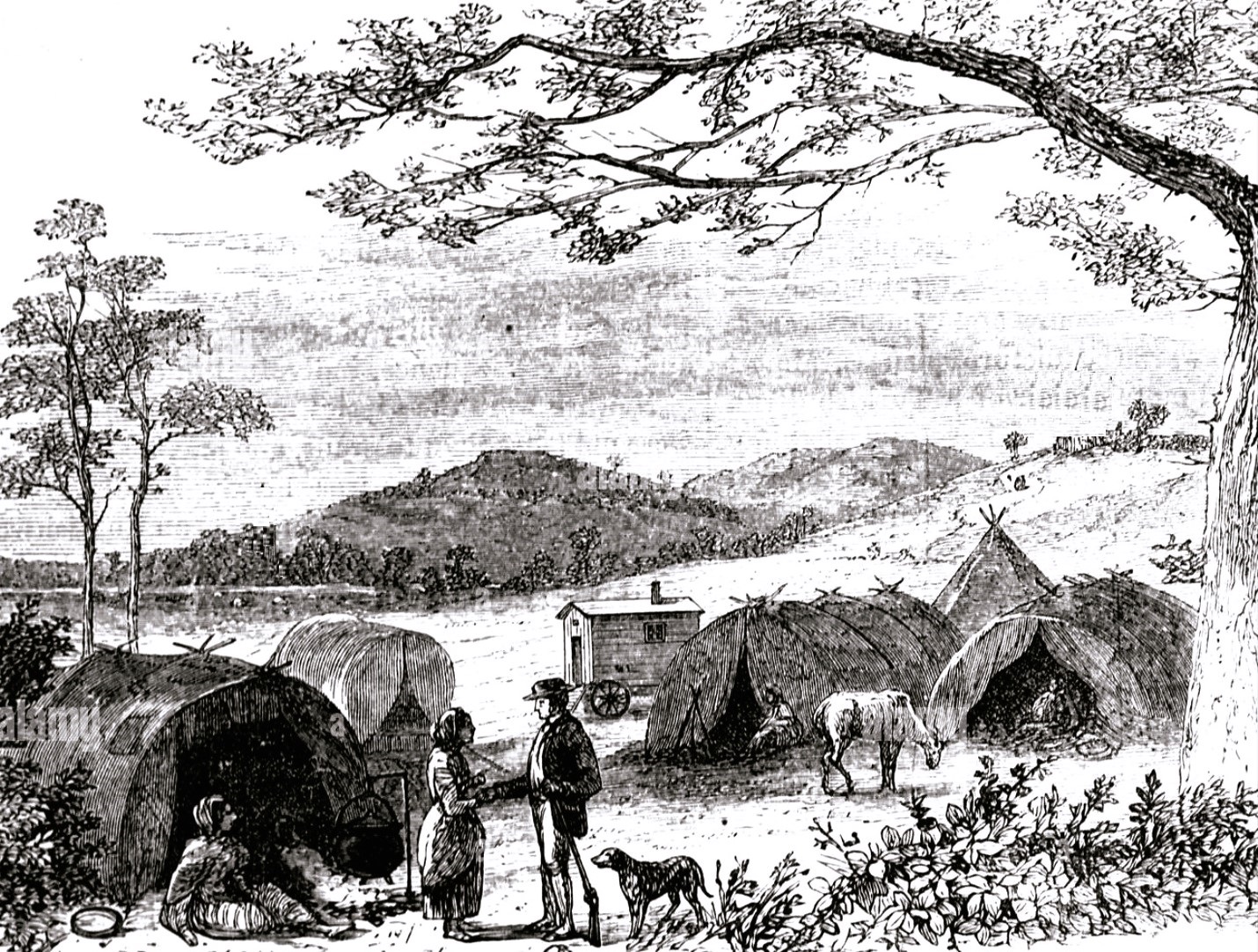 IN FOTO Romantica veduta di un accampamento di zingari nella seconda metà del XIX secolo