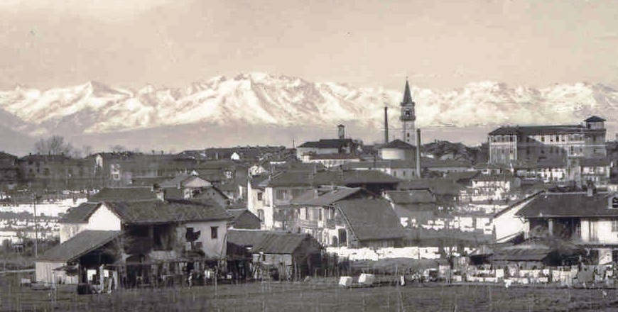 Settimo Torinese negli anni Trenta dello scorso secolo. Le macchie bianche sono i panni stesi al sole dai lavandai