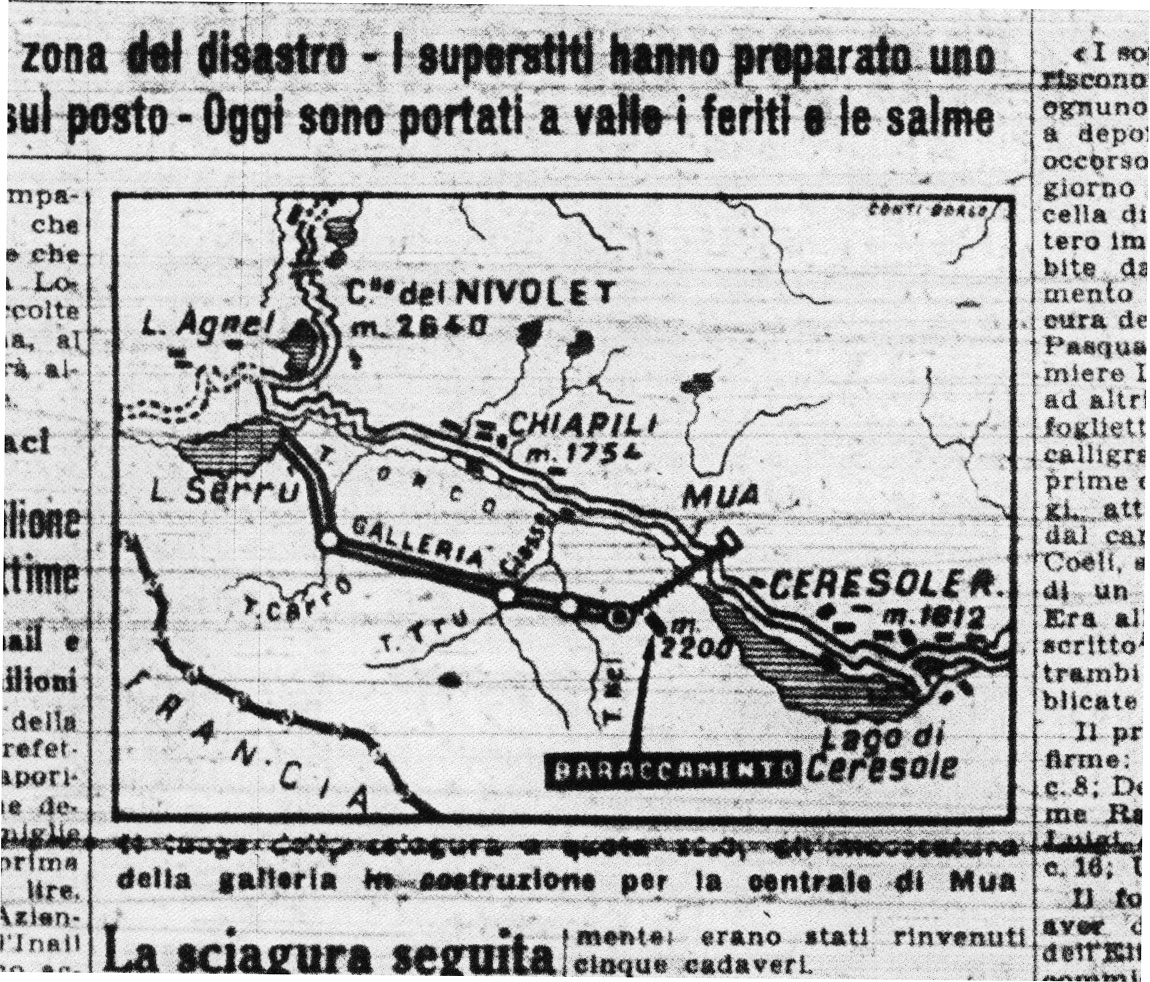 Ma, con titoli di taglio centrale, i due quotidiani torinesi pubblicano la notizia con evidente rilievo: Una slavina piomba su una baracca gremita di operai, 9 morti e 6 feriti scrive «La Stampa», mentre la «Gazzetta del Popolo» annuncia: Nove operai sepolti nel sonno da una slavina abbattutasi su un dormitorio presso Ceresole; «l’Unità», invece, contrassegna la sciagura denunciando che i lavoratori falciati sono quasi tutti immigrati dal Sud e dal Veneto.
