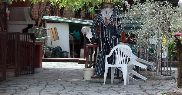 Il fantoccio che venne esposto all'arrivato dei carabinieri nel cortile della villa al civico 21 di via Gramsci a Torrazza Piemonte