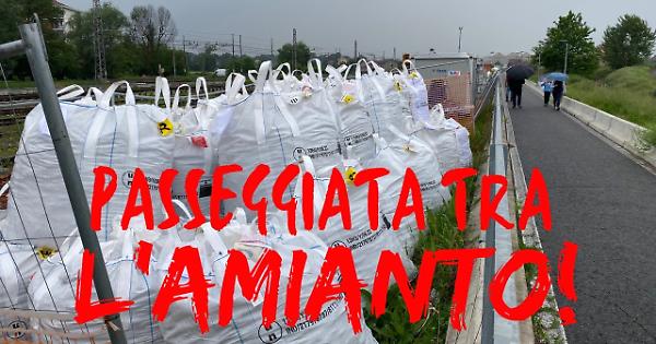 “Allertato questa mattina da alcuni abitanti di zona Rivoira, sono andato a verificare di persona la situazione che mi era stata presentata al telefono - spiega Prestìa -. Davanti agli occhi, una lunga serie di enormi sacchi bianchi accatastati lungo la ciclovia che costeggia la ferrovia, con scritto "contiene amianto", altri col codice di riferimento di materiali pericolosi, alcuni aperti, altri chiusi alla bell’è meglio…”