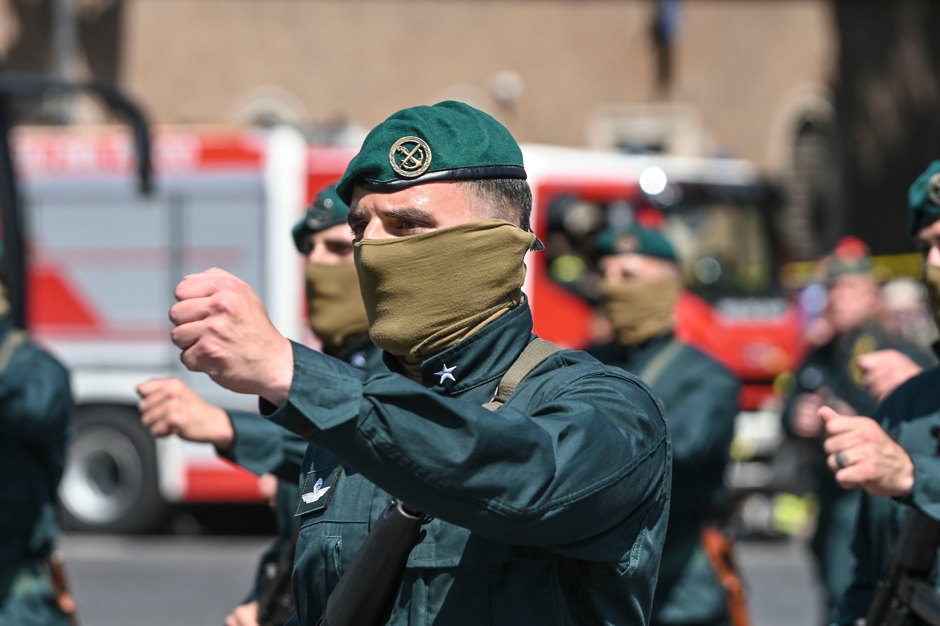 Il riferimento è al passaggio degli incursori del Comsubin della Marina: gli specialisti - tuta e berretto verdi, volti travisati da un fazzoletto beige - urlano 'Decima' quando sfilano sotto il palco delle autorità.
