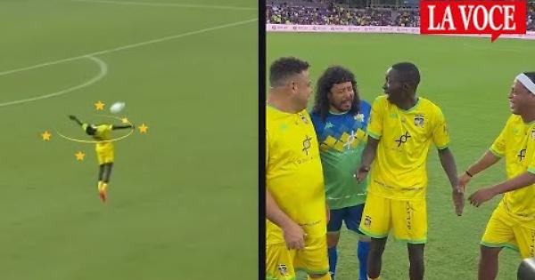 In una partita a scopo benefico sul campo di Orlando, in Florida, a cui hanno preso parte ex calciatori del calibro di Higuita, Ronaldhino e Ronaldo, ha regalato una perla di rara bellezza.