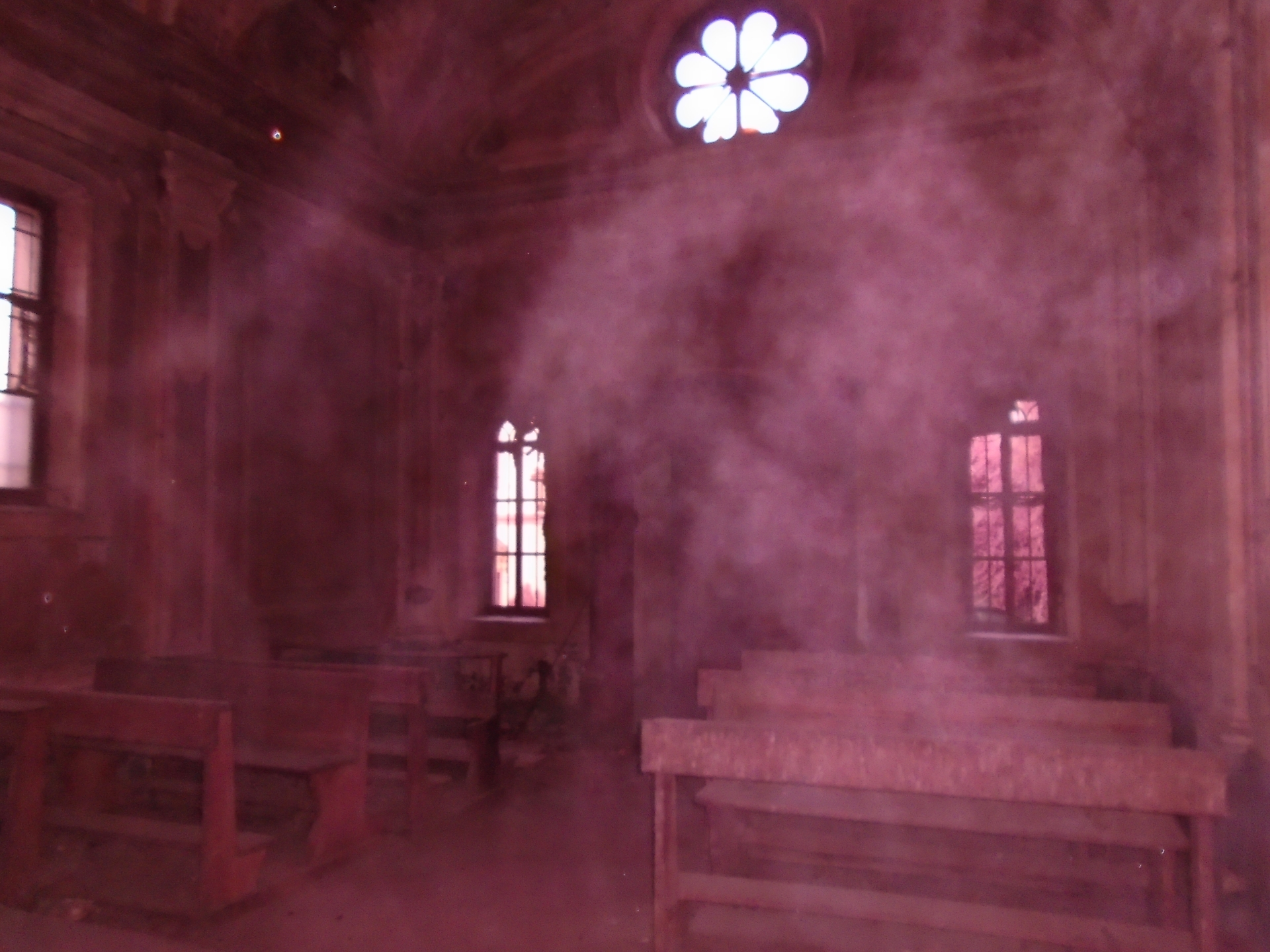 Negli scatti fatti a Lauriano, in una foto si evidenzia un’anomalia piuttosto marcata al centro del corridoio. In altri due scatti sequenziali, invece, si rileva un ORB, un effetto ottico consistente in piccole sfere o globi luminosi che talvolta appaiono pur non corrispondendo ad oggetti visibili ad occhio nudo, nel centro del portone mentre, in un’altra, si viene a formare una sorta di nebbiolina, che “noi chiamiamo formazione igroscopica”, spiega Daniele.