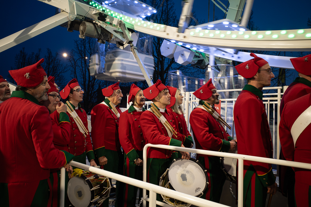 E poi succede che a fine giornata, la terzultima di Carnevale, i "Pifferi e tamburi" salgono sulla ruota panoramica e cominciano a suonare, aggiungendo ad una giornata già carica di emozioni, un altro indimenticabile momento.