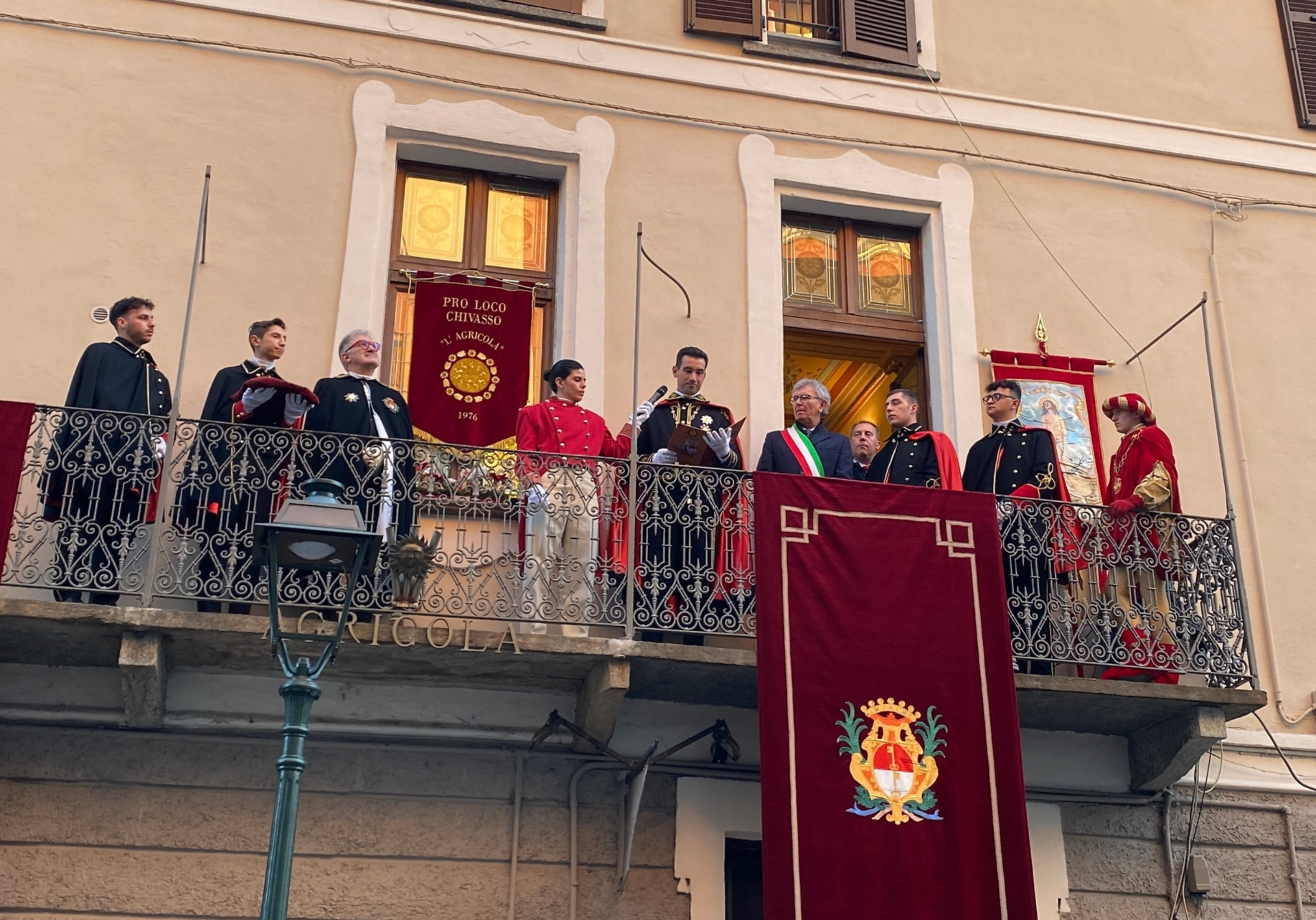 Dopo la Santa Messa officiata dal Vescovo di Ivrea Monsignor Edoardo Cerrato e da Don Davide Smiderle, dal balcone di Palazzo Rubatto sede della Pro loco l’Agricola, il 69º Abbà ha ricevuto dal sindaco Claudio Castello le chiavi della città di Chivasso.
