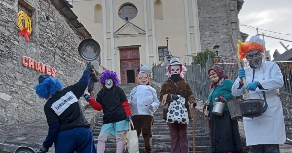 Il Carnevale ha avuto inizio in tarda mattinata, quando le Barboire, maschere tradizionali di Chiaves dal look stravagante e vagamente inquietante, hanno accolto i fedeli all’uscita della Messa con burle, coriandoli e caramelle. Questa tradizione, che si rinnova ogni anno in occasione dell’Epifania, è proseguita con la discesa in piazza dove, sulle note della Fanfara tradizionale, le Barboire hanno regalato momenti di intrattenimento con piccoli sketch che hanno divertito il pubblico.