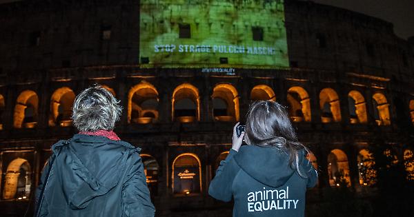 Ieri sera, nel cuore di Roma, il Colosseo si è trasformato in un enorme schermo di denuncia. Animal Equality, l’organizzazione internazionale che si batte per i diritti degli animali, ha proiettato sulla facciata del monumento un messaggio forte e inequivocabile rivolto ai ministri dell’Agricoltura, della Salute e del Made in Italy: "Lollobrigida, Schillaci, Urso: agite ora, stop alla strage dei pulcini maschi!".