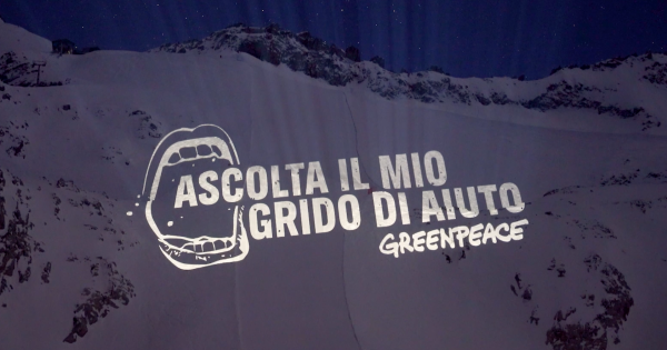 Per sensibilizzare sui rischi di perdere questi preziosi ecosistemi alpini, nei giorni scorsi Greenpeace ha realizzato un’enorme proiezione sul Ghiacciaio Presena Ovest, in Trentino-Alto Adige, dando simbolicamente voce al grido di aiuto che arriva dai giganti di ghiaccio italiani, sempre più minacciati dal riscaldamento globale.