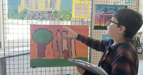 A chiudere con la sua testimonianza è la maestra Valeria, insegnante della scuola dell’infanzia e referente dei tre plessi di Verolengo, che ha sottolineato con orgoglio il valore del progetto: “Quest’anno abbiamo collaborato per il secondo anno con la professoressa Pagliarulo e la scuola secondaria di primo grado in un progetto di continuità verticale, nato proprio dall’idea di creare un ponte tra le attività svolte all’infanzia e quelle delle scuole medie. Il nostro territorio offre tanti spunti interessanti. Lo scorso anno il progetto è stato teatrale, mentre quest’anno si è trattato di un progetto d’arte, al quale ha partecipato anche la professoressa Franca Villata, una docente in pensione che ha insegnato per tanti anni nel nostro istituto. Franca ci ha dato un prezioso contributo, fornendo molte nozioni storiche e artistiche riguardo il nostro territorio, le chiese e gli angoli più suggestivi.”